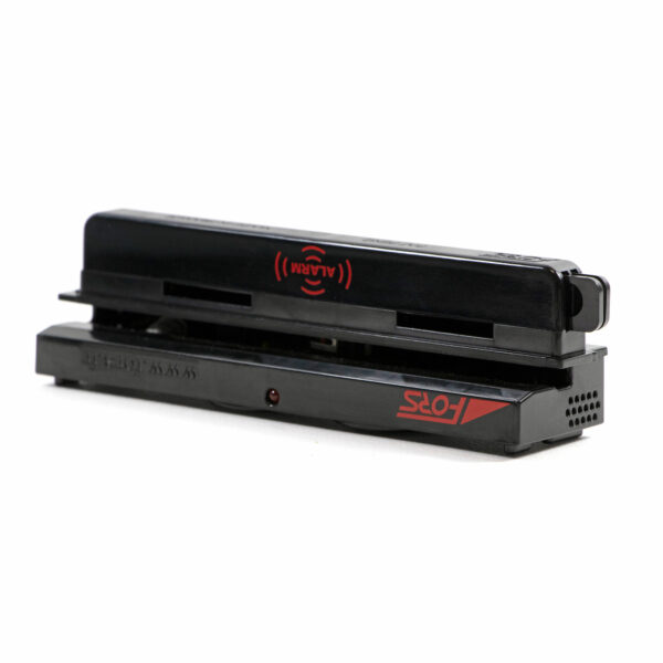 Gâchette de verrouillage brevetée pour boîtiers antivol Fors avec 4 points de protection, ferrite RF ou AM, et alarme intégrée.